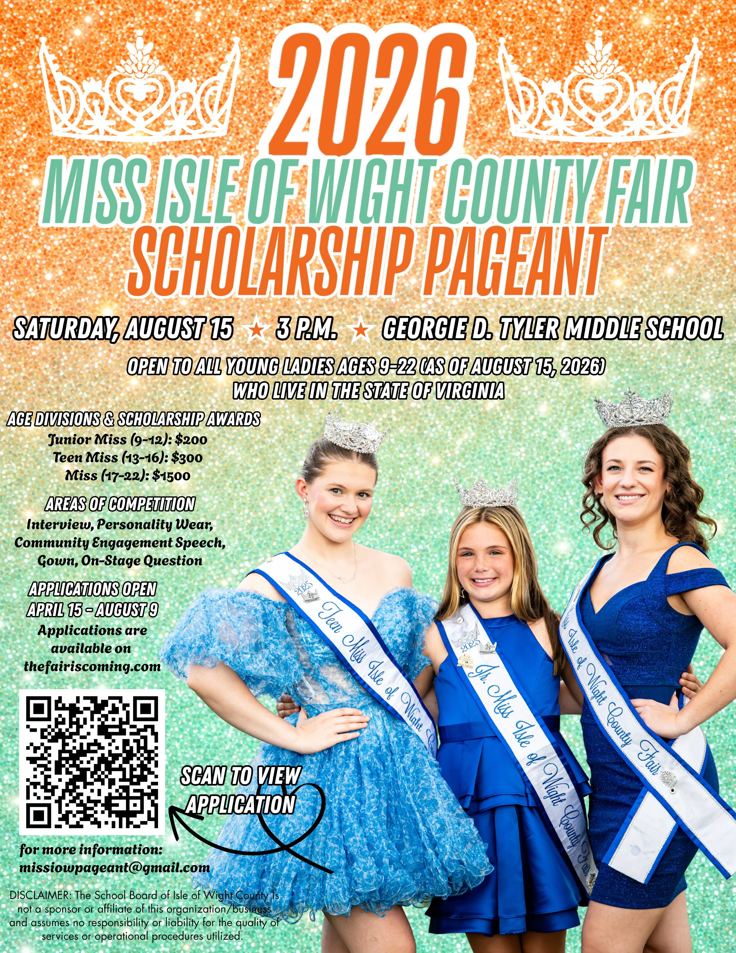 2026 Miss Isle of Wight County Fair Pageant Application Available beginning April 15.Deadline: Sunday, August 9, 2026